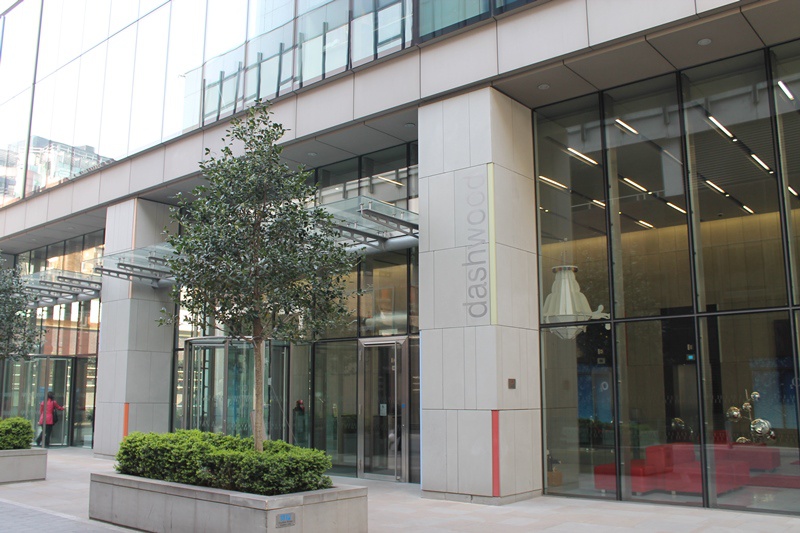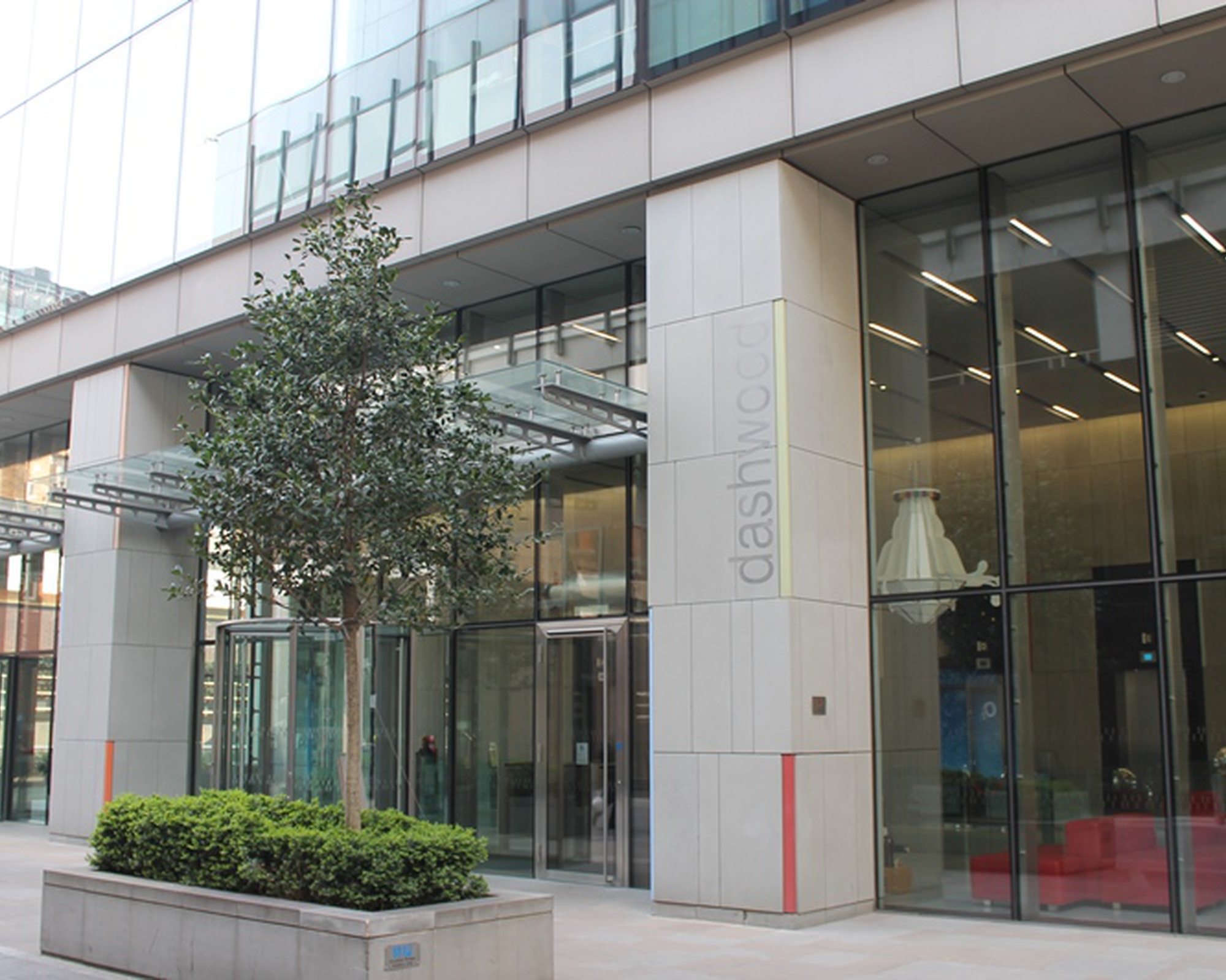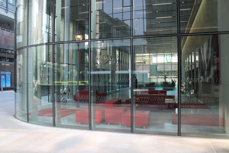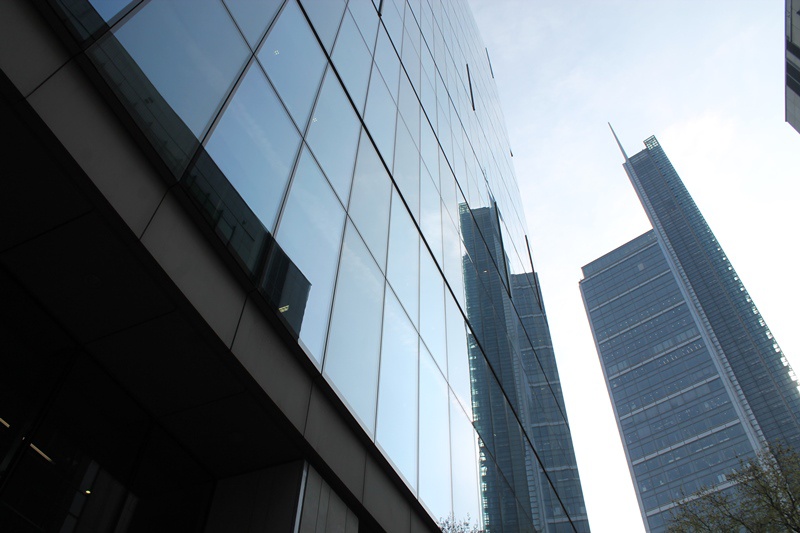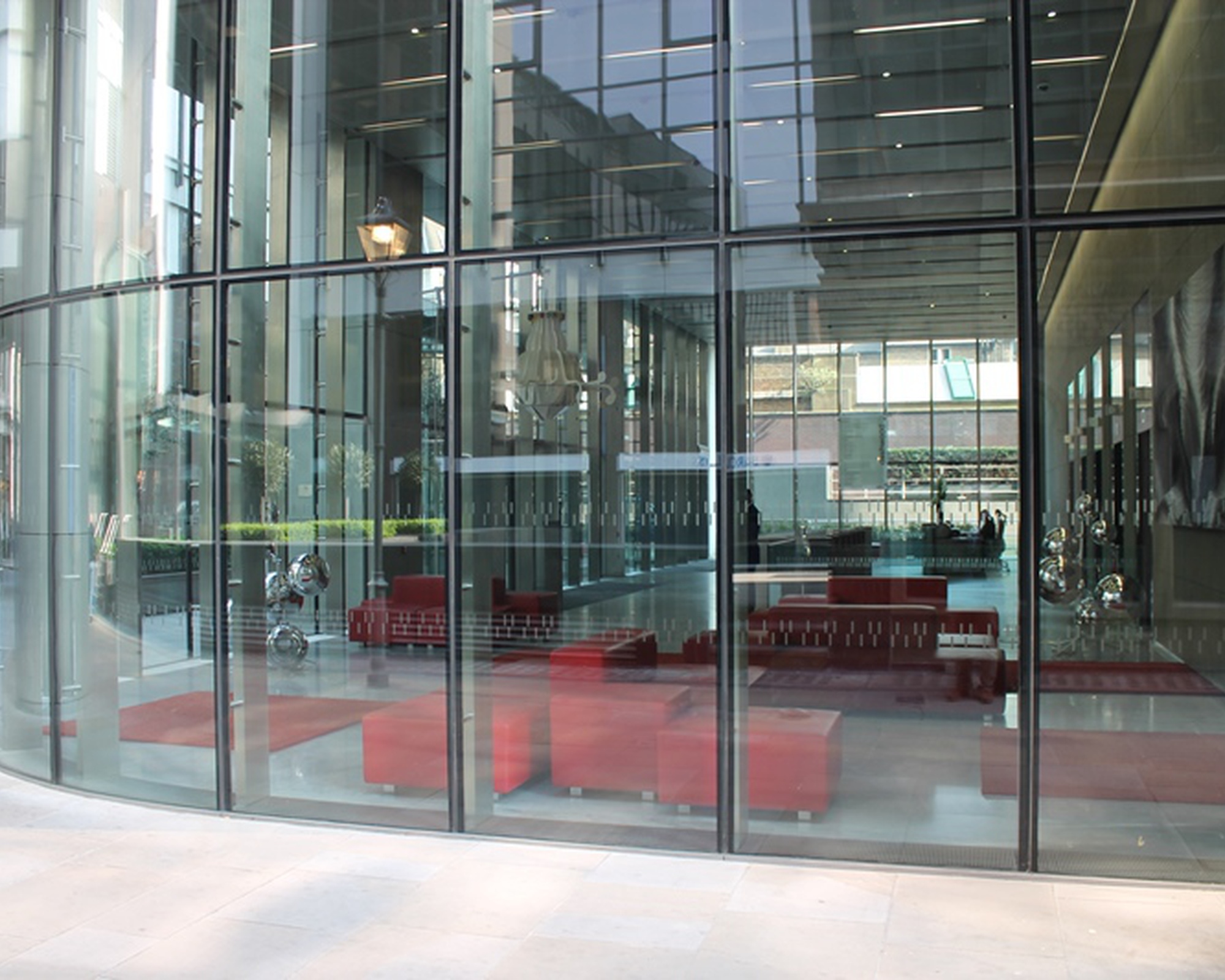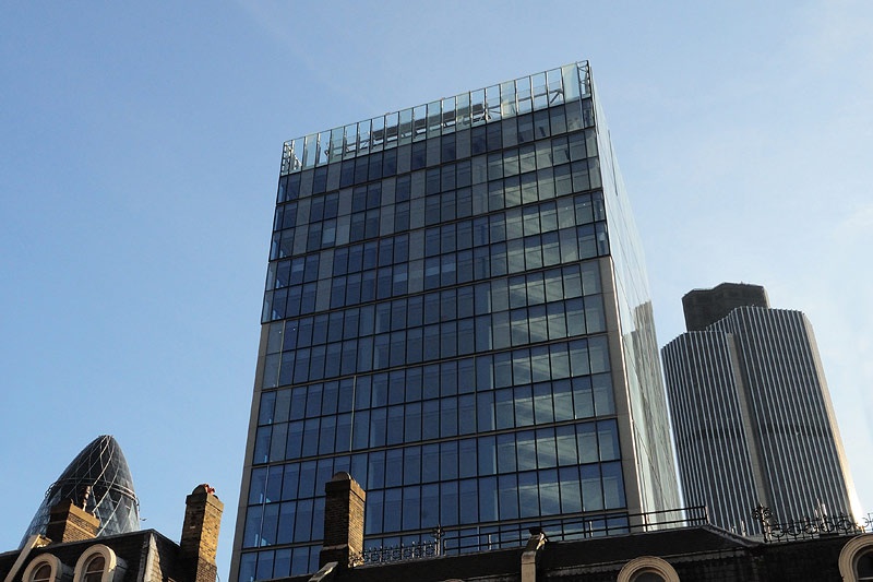 Hochhaus mit Elementfassade, Ganzglas-Dachaufbau