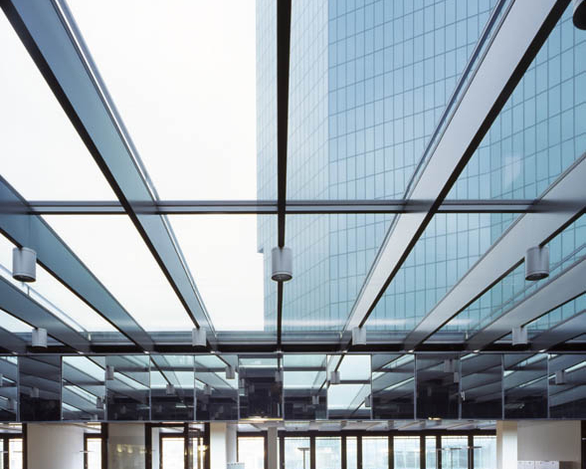 Ganzmetallfenster mit vorgehängten Glasbrüstungen