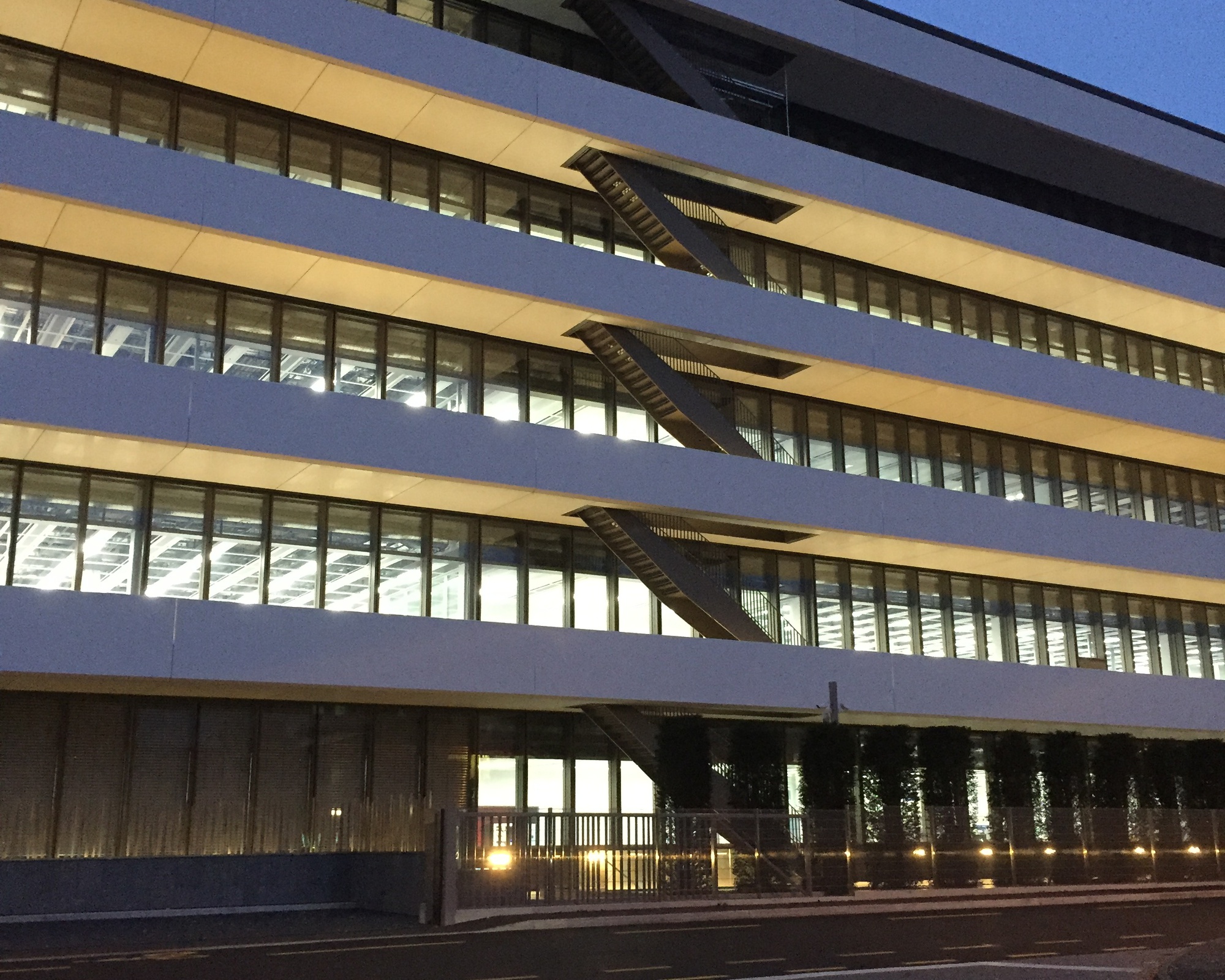 Das Attikageschoss besteht aus vorfabrizierten raumhohen Fassadenelementen mit integriertem Sonnenschutz.