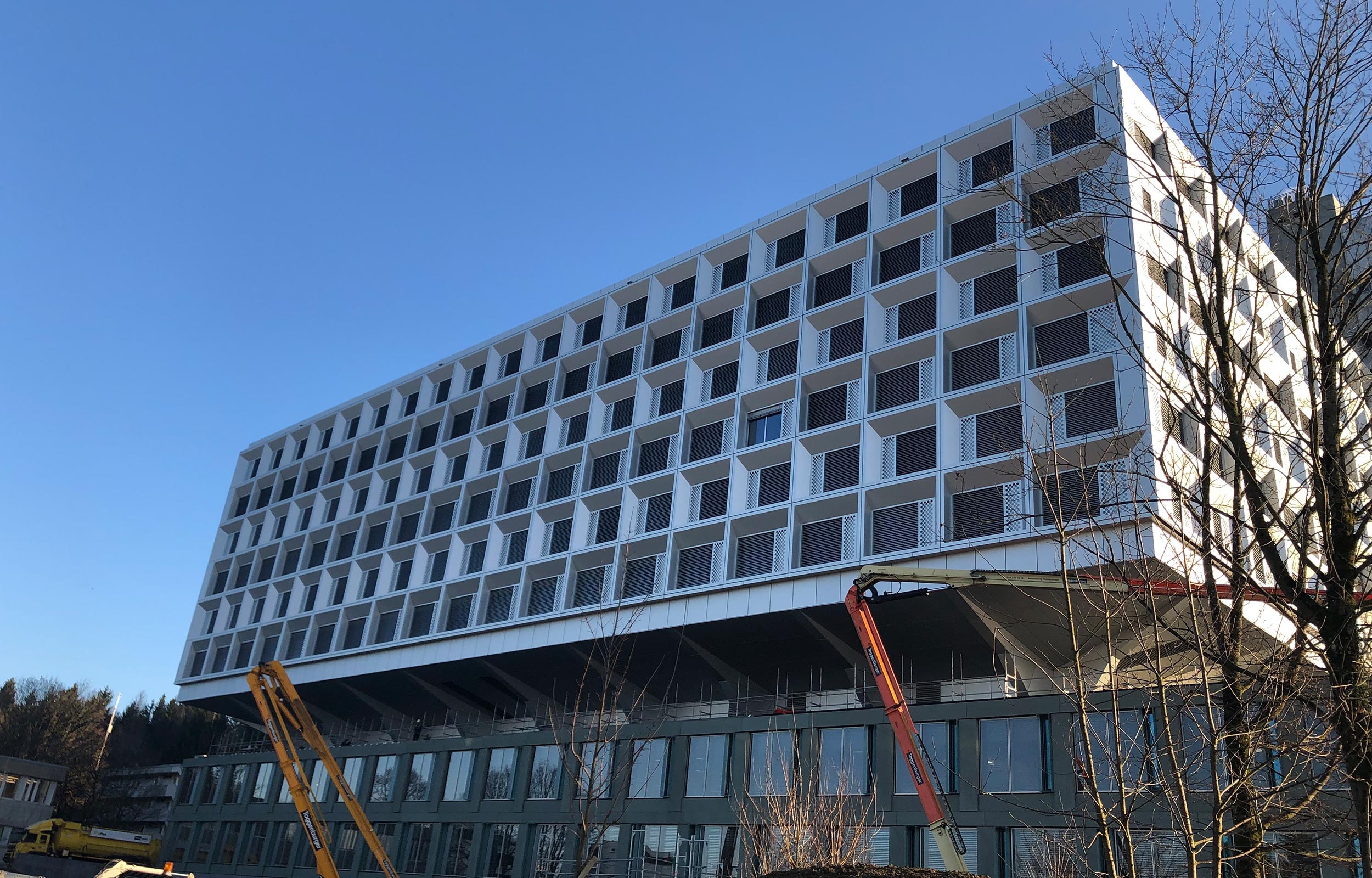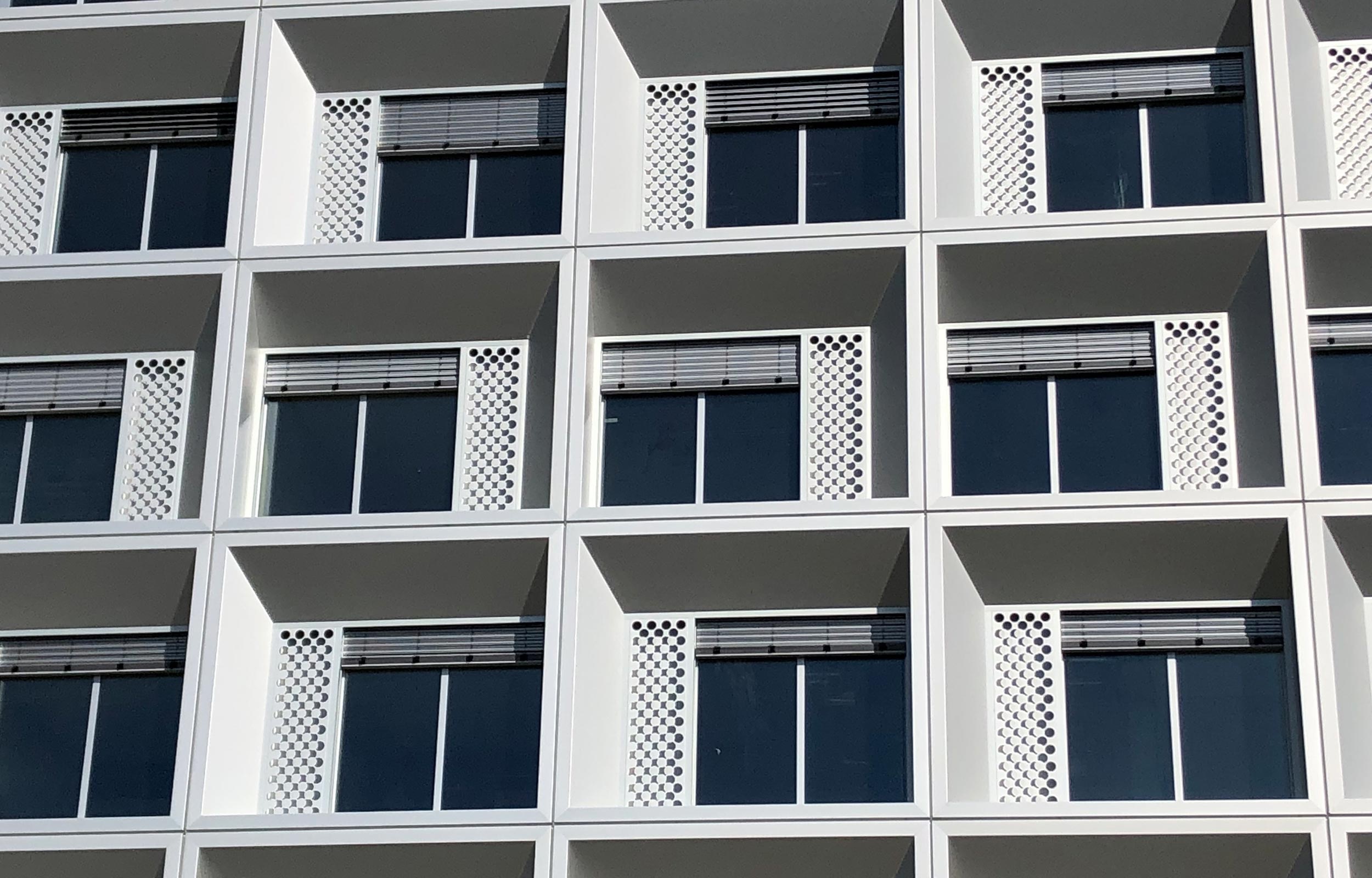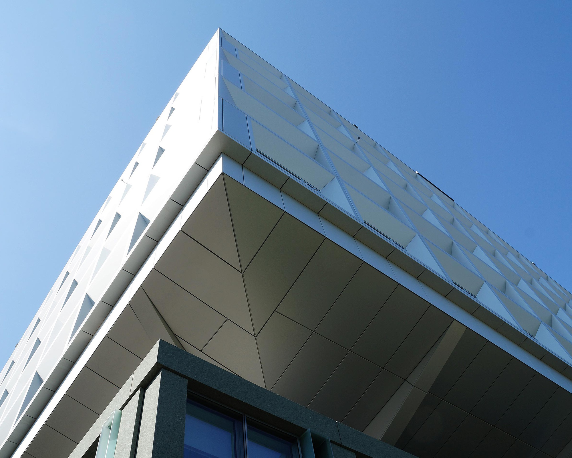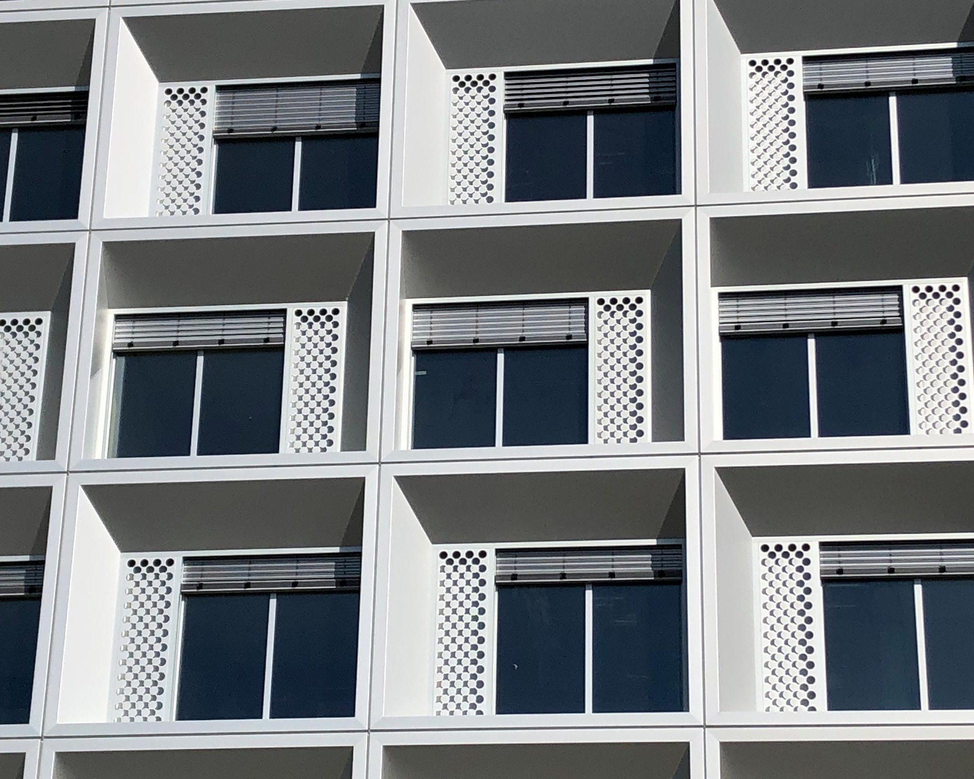 Eléments de façade Active Air Plus équipés d’embrasures en verre et éléments en béton Préfabriqués