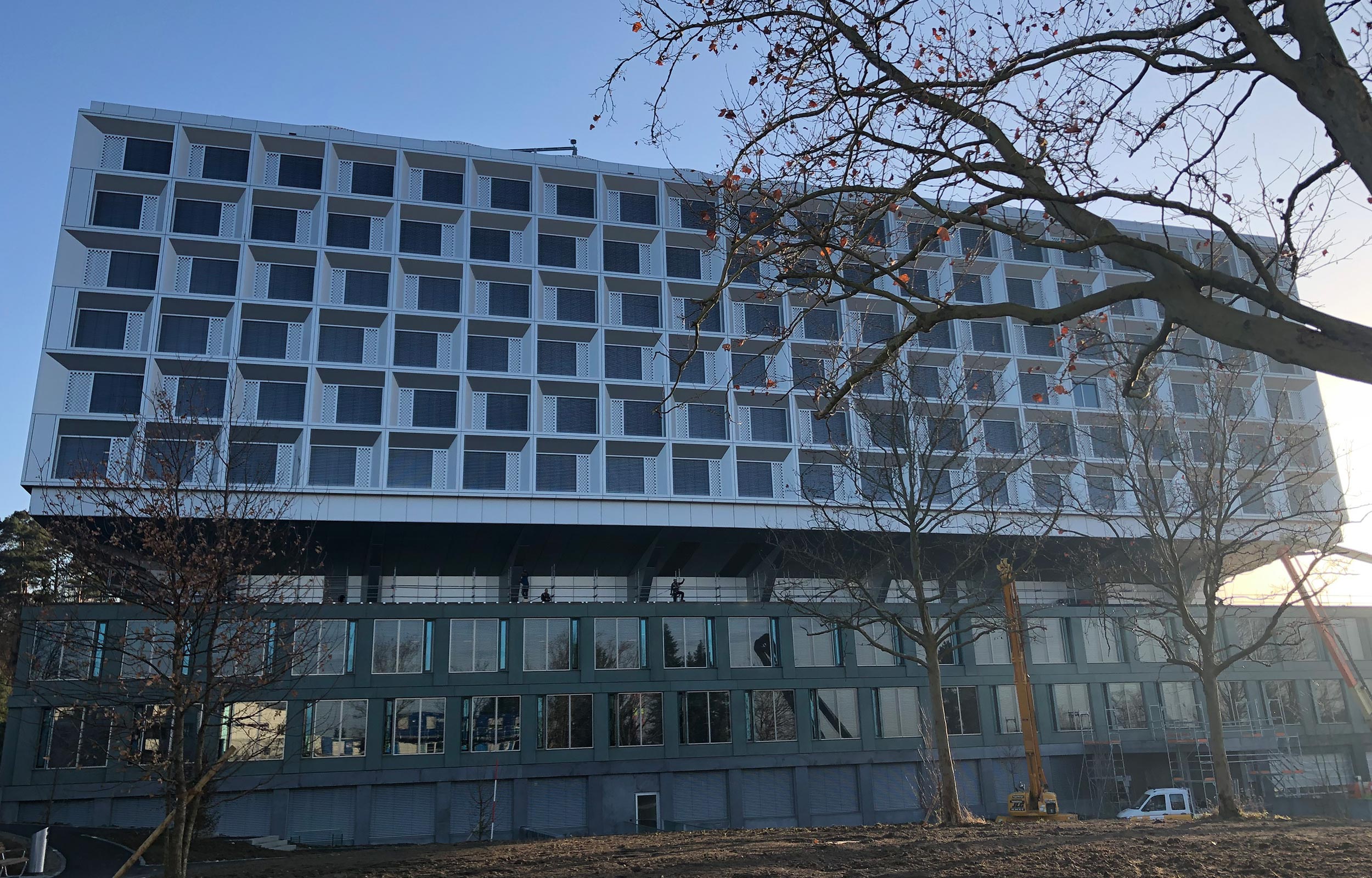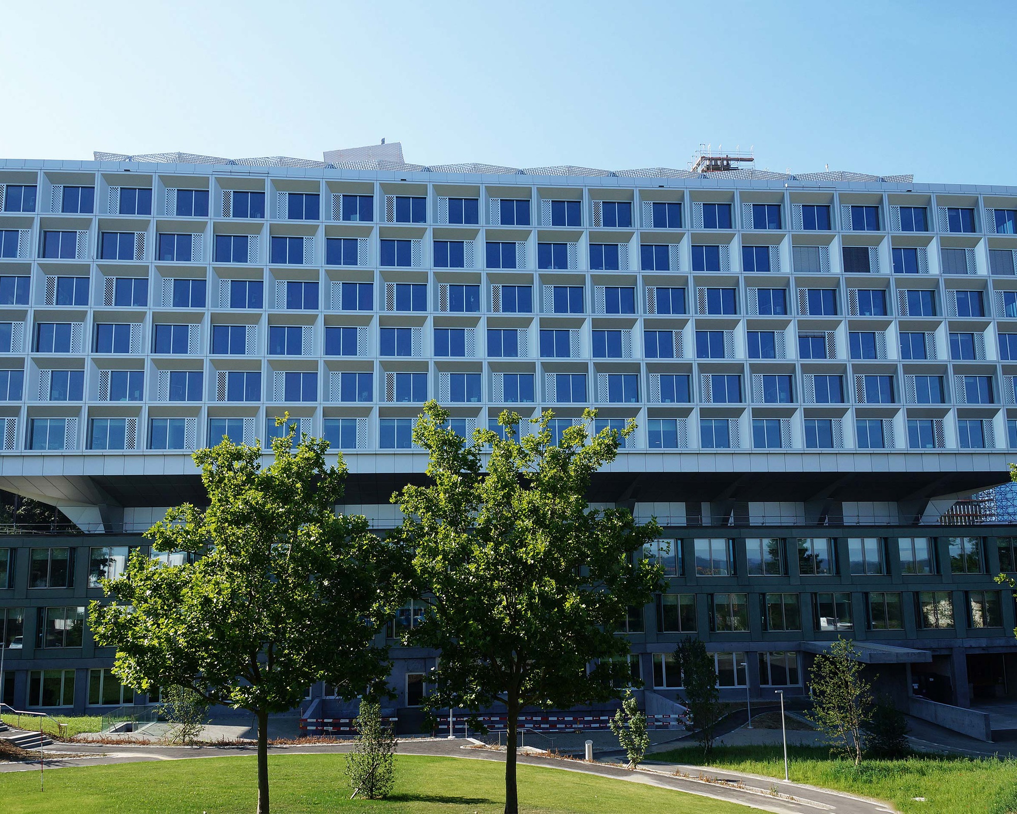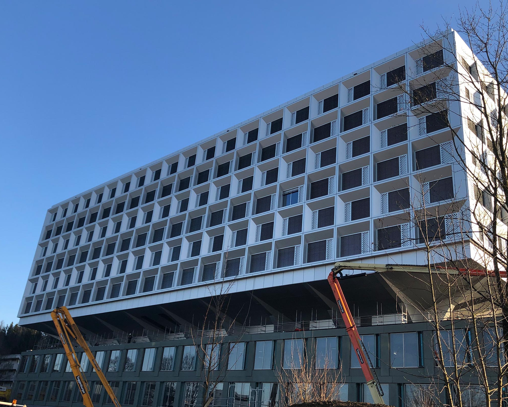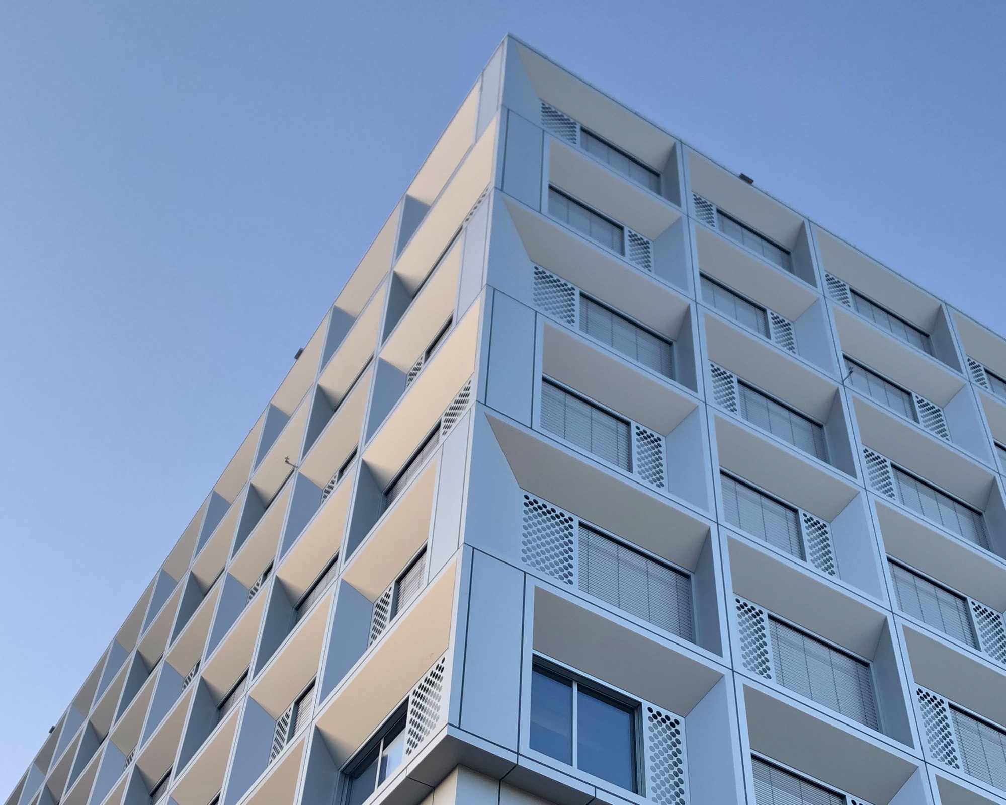 Eléments de façade Active Air Plus équipés d’embrasures en verre et éléments en béton Préfabriqués