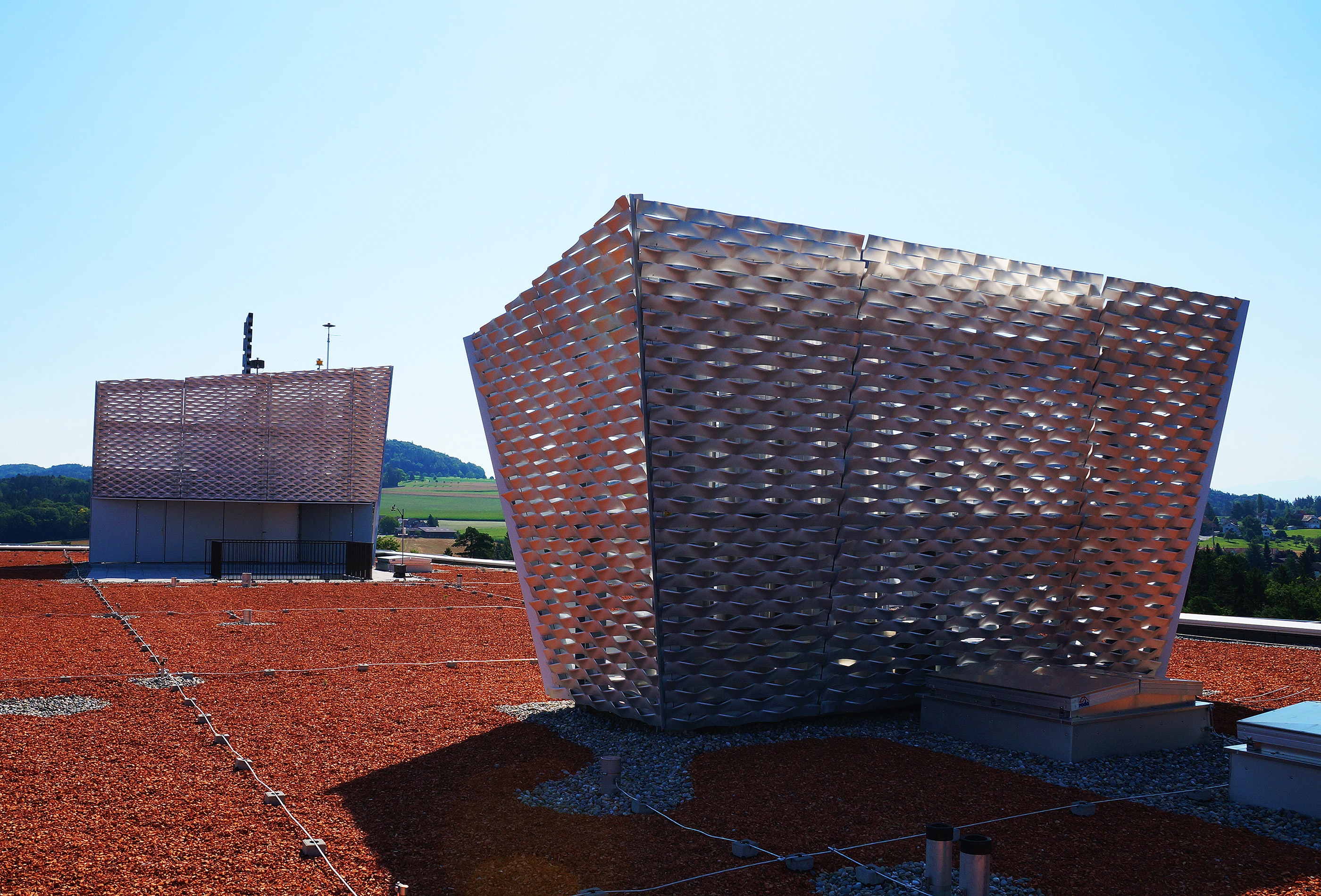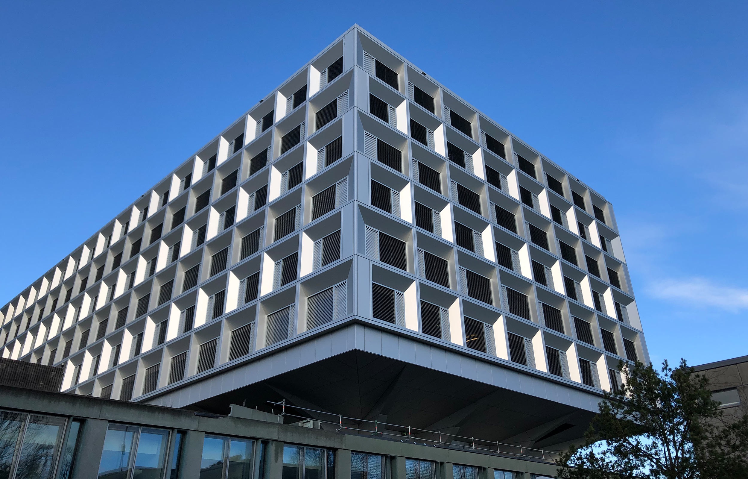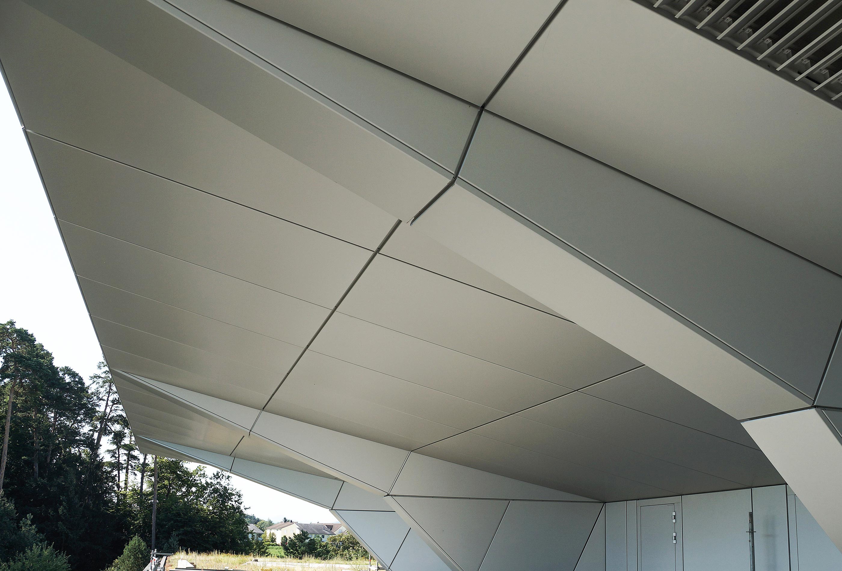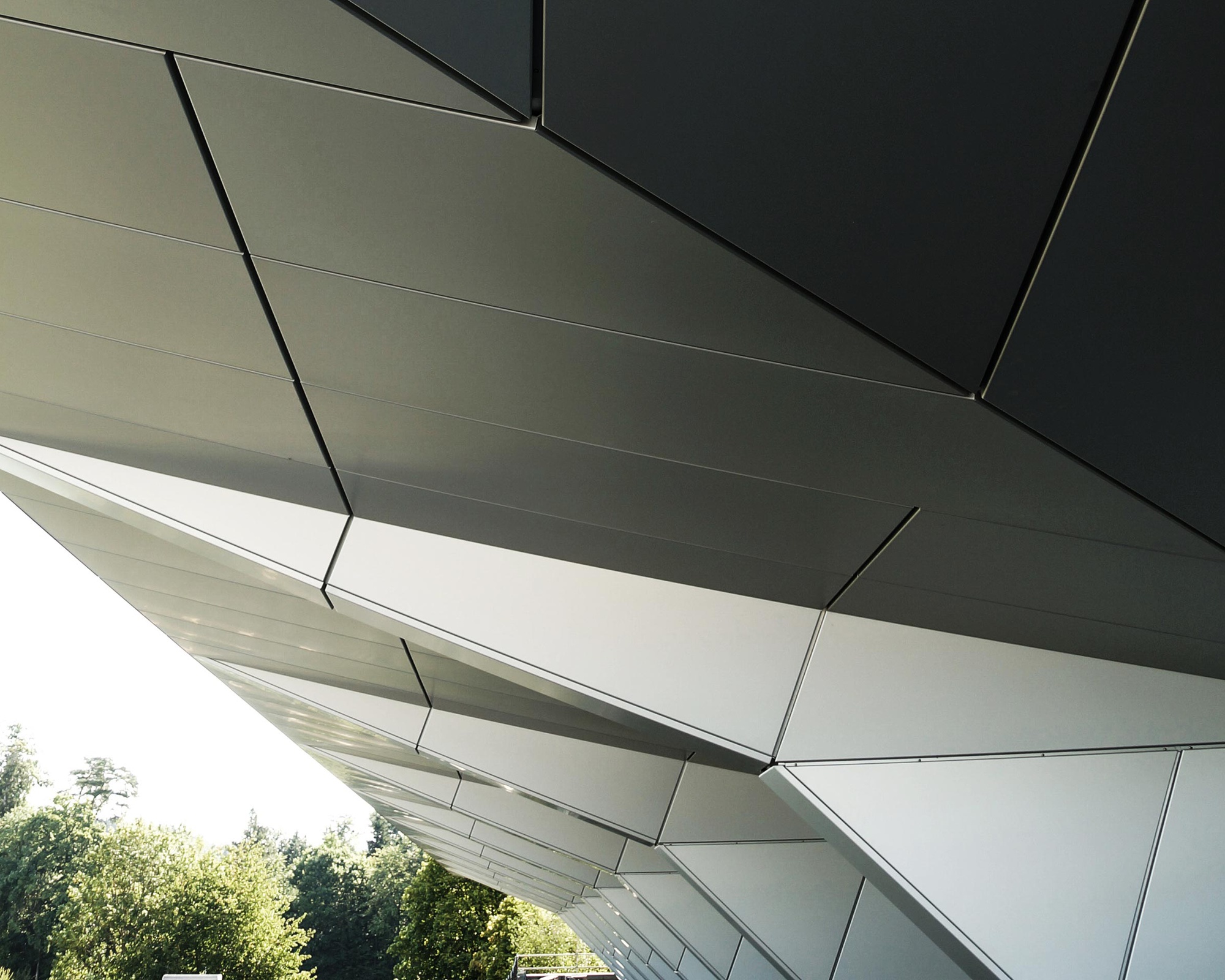 Panneaux de façade habillés avec des panneaux de métal déployé.